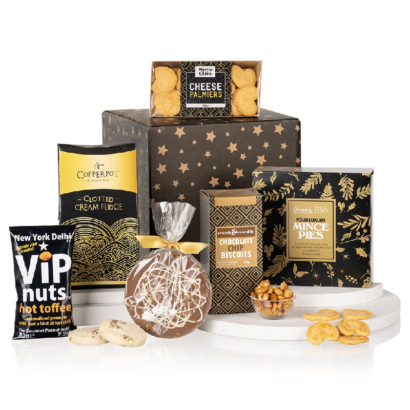 Celebrate the season in truly indulgent style with the Goodies Galore Gift—a sumptuous collection of sweet and savoury delights designed to enchant recipients, clients, and loved ones alike. Nestled in a sleek presentation box, this hamper brings together festive favourites and gourmet treats for an unforgettable holiday experience.