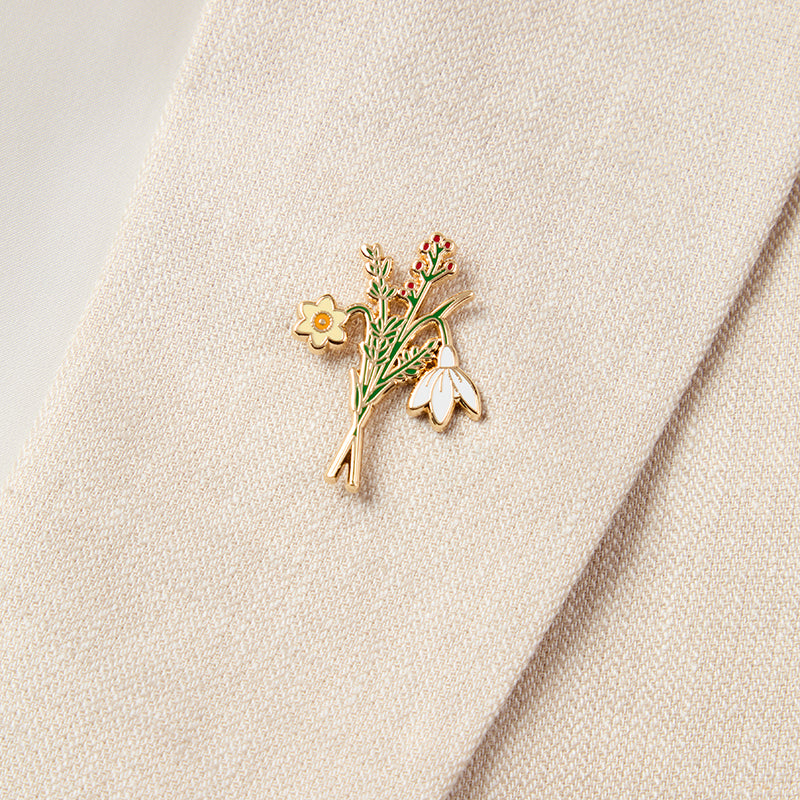 Home/Daffodil pins & jewellery/Snowdrop & Berries Marie Curie Pin