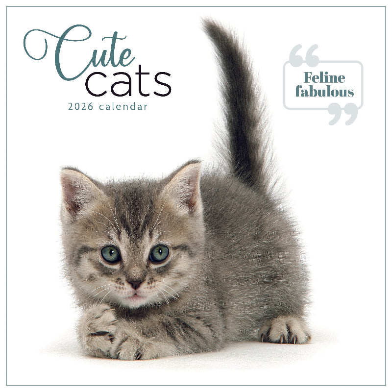 Enjoy a delightful selection of adorable cats in this charming 2026 Calendar! Each month features a heartwarming photo paired with an inspiring motto or saying. Featuring month-to-view pages and plastic-free packaging.