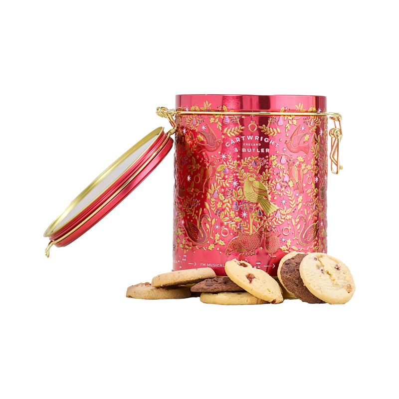 • 4 types of biscuits, placed into a decorative musical clip lid tin.