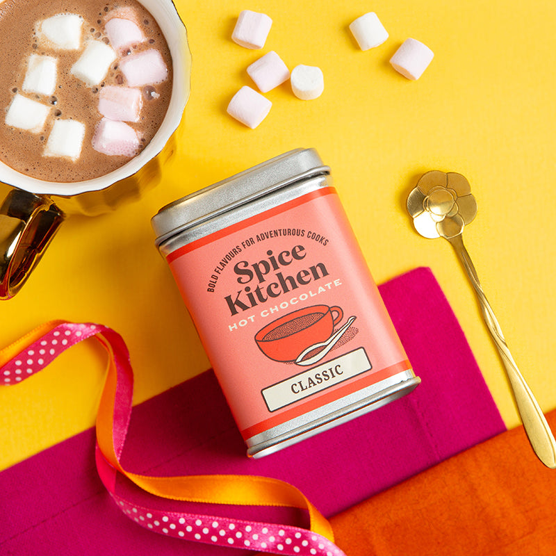 - Classic Hot Chocolate (100g) – Contains: Sugar, Fat Reduced Cocoa Powder (27%), Dextrose, Salt, Anti-Caking Agent: Silicon Dioxide