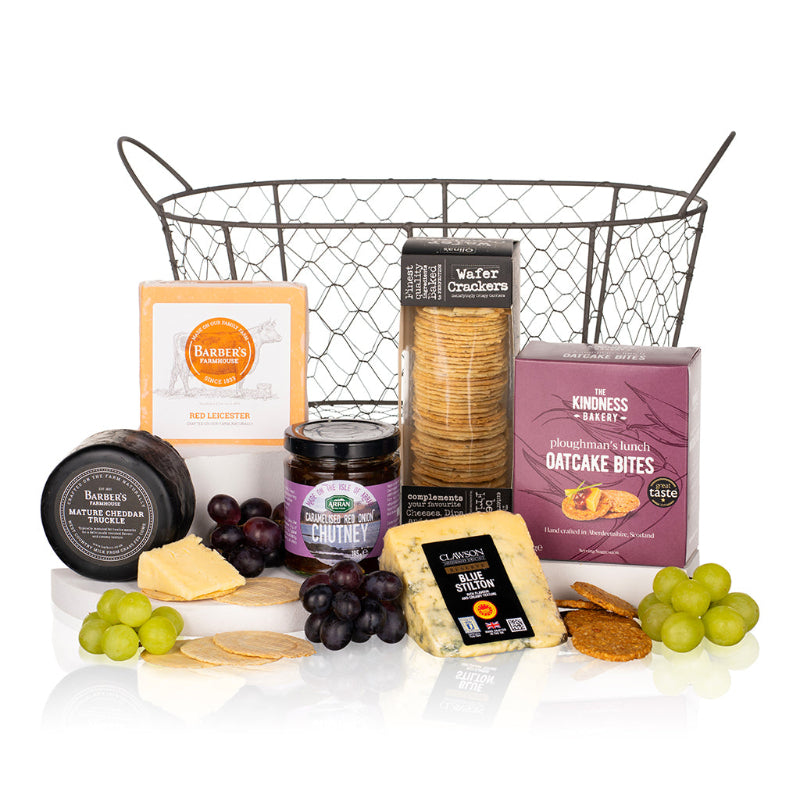 Spread festive cheer with the Just Say Cheese Hamper—a perfectly curated collection for cheese lovers everywhere. Presented in a charming wire mesh oval basket, this gift is a warm and rustic celebration of savoury indulgence.