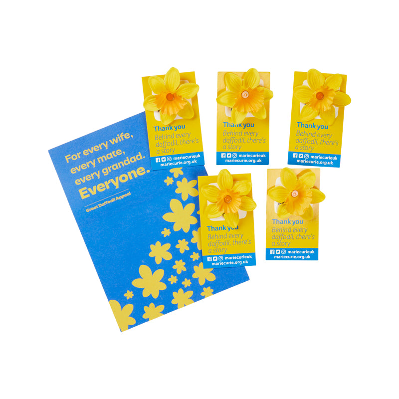 Marie Curie collection Daffodil pins & jewellery Wedding favours Beat the Trails Memory & sentiment Great Daffodil Appeal Marie Curie trek shirts