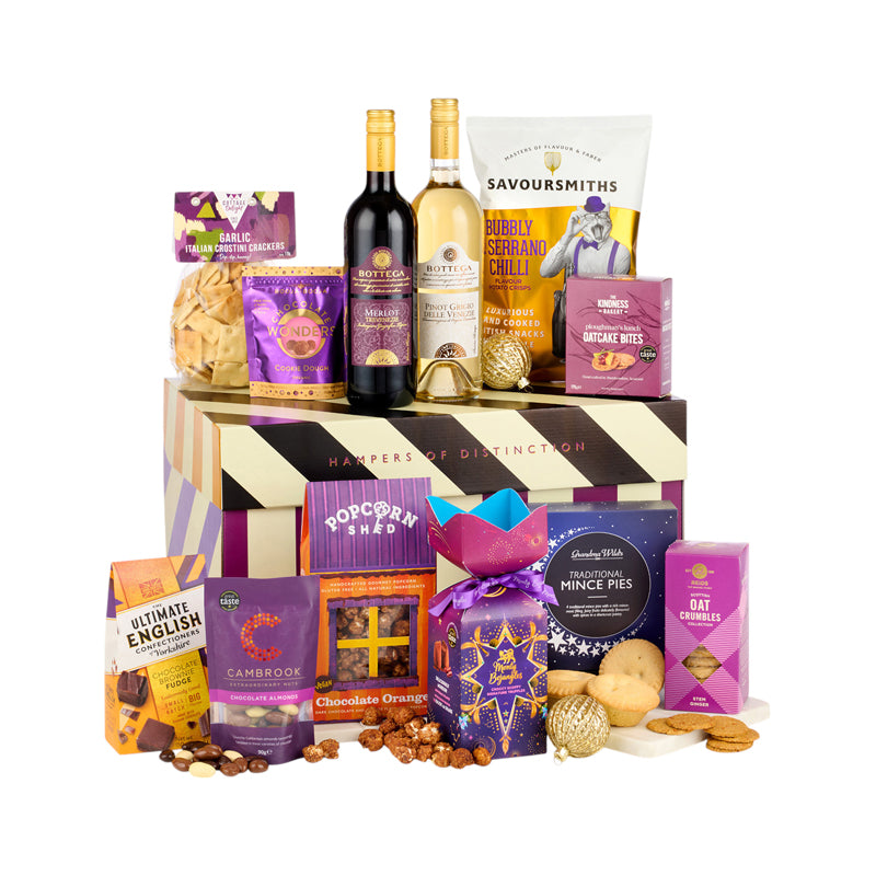 Bring a touch of luxury to the season with The Festive Indulgence – a generous hamper that pairs fine wines with an irresistible medley of sweet and savoury delights. Presented in a stylish gift box, it’s designed to be the perfect centrepiece for Christmas Day or an elegant gift for someone special.