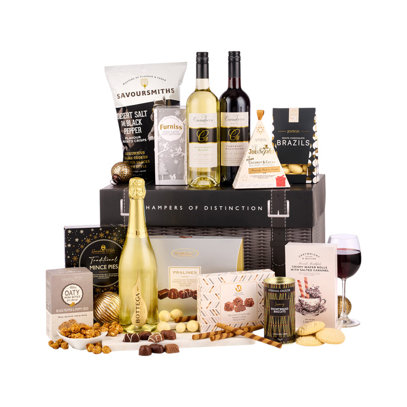 Bring a touch of luxury to the season with The Frosty Nights Gift Box – a generous hamper that pairs fine wines with an irresistible medley of sweet and savoury delights. Presented in a Wicker Look Gift Box, it’s designed to be the perfect centrepiece for Christmas Day or an elegant gift for someone special.