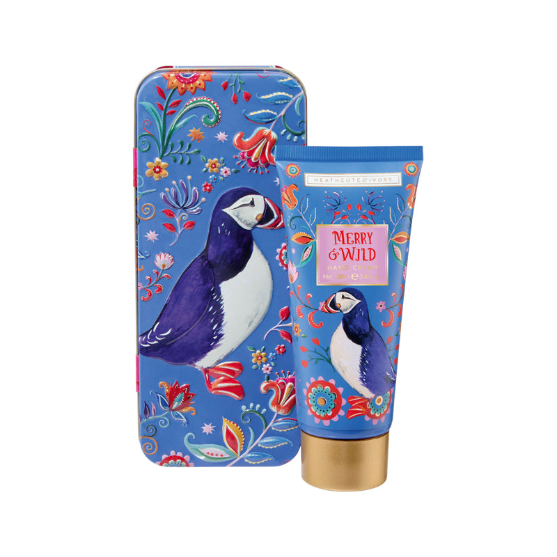 Calling all wildlife lovers! Make Merry and celebrate British wildlife with our collectable tin containing luxurious, vegan hand cream. Decorated with a colourful puffin amongst flowers, it makes an enchanting gift for all ages.