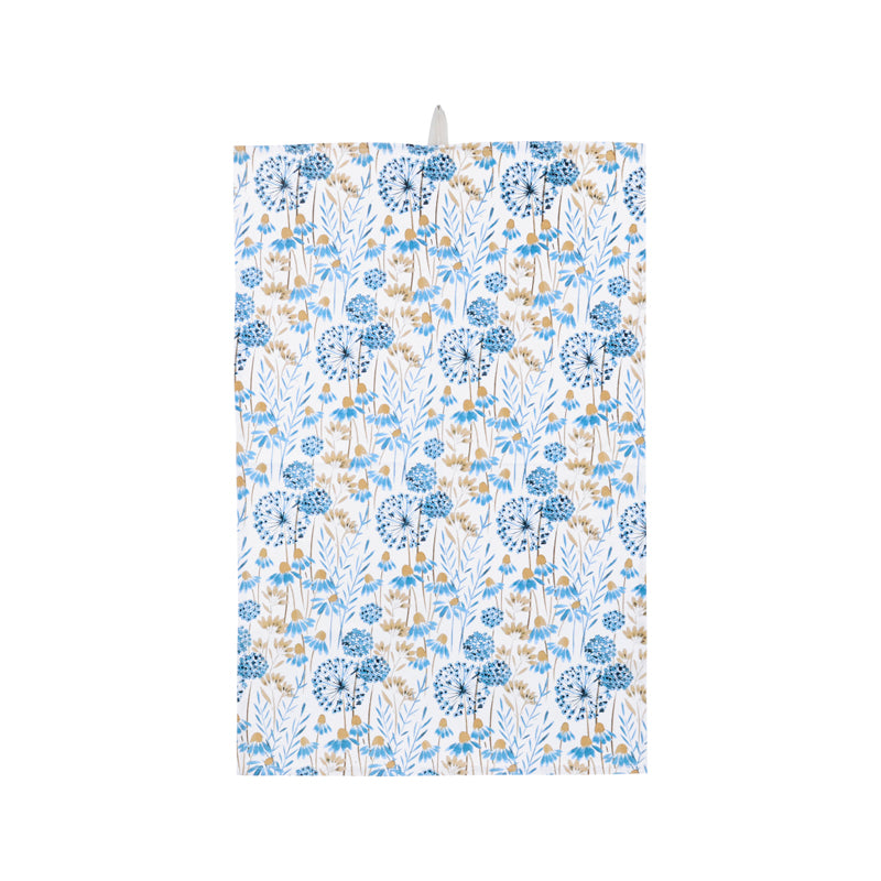 This practical and stylish tea towel has a pretty blue meadow print on it. Add a pop of spring colour to your kitchen.