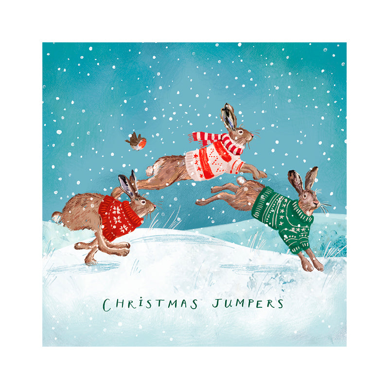 Christmas Jumper Hares Christmas Cards - 10 Pack