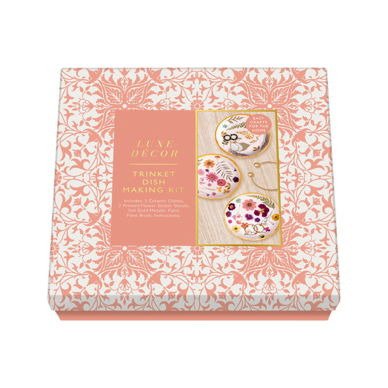 This Luxe Décor Ceramic Trinket Dish Craft kit has everything you need to create three stunning keep sake trinket dishes.