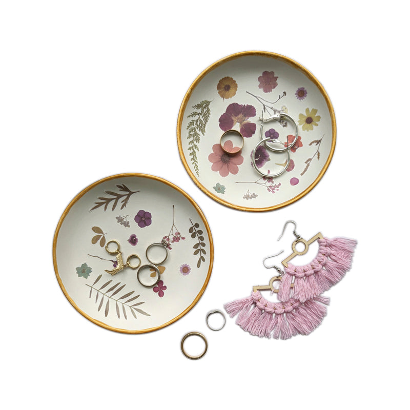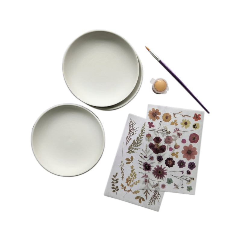 - Contains: 3 Ceramic Dishes, 2 Pressed Flower Sticker Sheets, 3ml Gold Matallic Paint, Paint Brush & Instructions