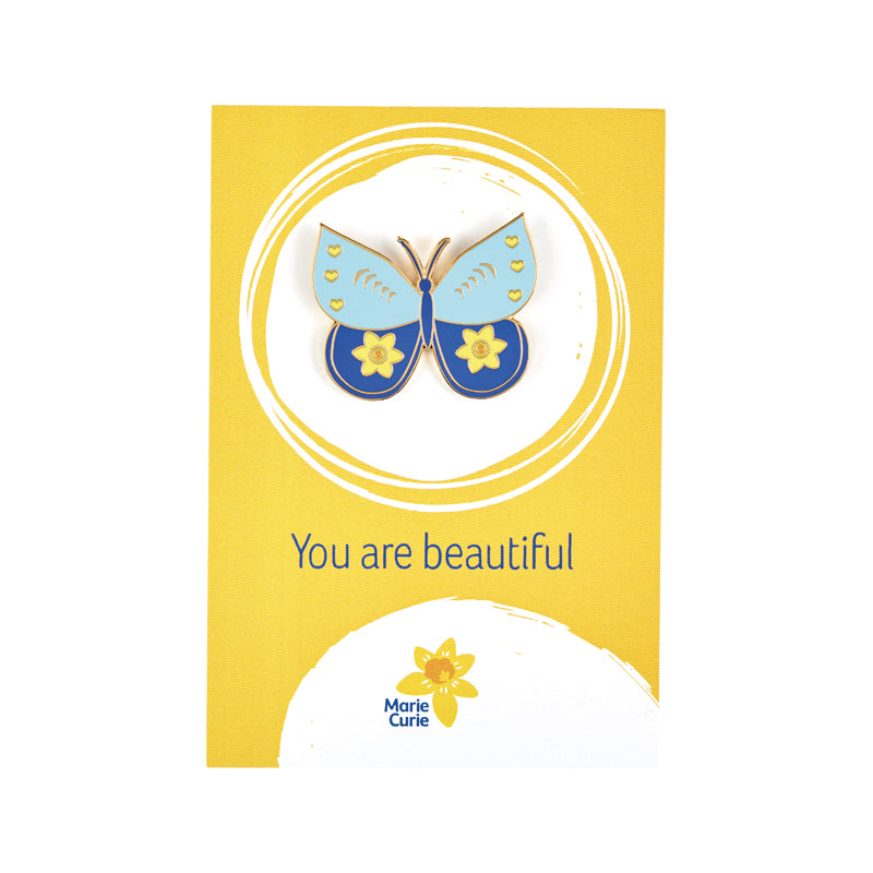Designed exclusively for Marie Curie this Butterfly Pin with You are Beautiful message on backing card is a great way to show your support for our wonderful charity.