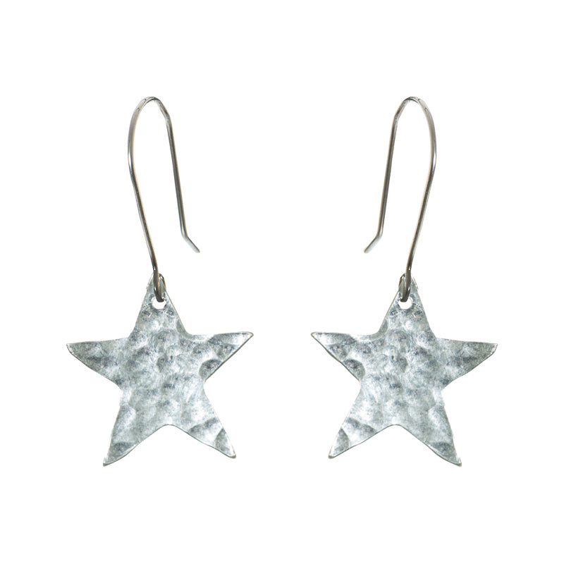 These stunning Star Silver Plated Earrings are hand cut from brass sheet and planished using a specialist hammer to give texture.